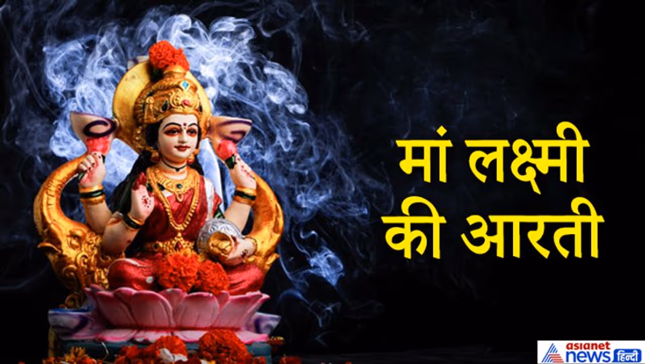 आरती के लिए एक थाली में स्वस्तिक आदि मांगलिक चिह्न बनाकर चावल तथा फूलों के आसन पर शुद्ध घी का दीपक जलाएं। एक अलग थाली में कर्पूर रख कर पूजन स्थान पर रख लें। आरती की थाली में ही एक कलश में जल लेकर स्वयं पर छिड़क लें। पुन: आसन पर खड़े होकर अन्य पारिवारजनों के साथ घंटी बजाते हुए महालक्ष्मीजी की आरती करें-