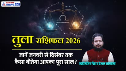 Libra Yearly Horoscope 2026: गणेशजी कहते हैं कि साल 2026 तुला राशि वालों के लिए बहुत सारी परेशानियां लेकर आ रहा है। लेकिन कुछ मामलों में राहत भी मिलेगी। नौकरी की स्थिति डांवाडोल रहेगी। बिजनेस में बड़े सौद टल सकते हैं। साल के मध्य में किसी गंभीर बीमारी का शिकार हो सकते हैं। इन्वेस्टमेंट करने से पहले अनुभवी लोगों की राय जरूर लें। राजनीति से जुड़े लोग किसी षड़यंत्र का शिकार हो सकते हैं। इनकी कोई गुप्त बात सावर्जनिक हो सकती है। ये लोग अपना वाहन सावधानी से चलाएं। ज्योतिषाचार्य चिराग बेजान दारुवाला से जानें तुला राशि वालों के लिए कैसा रहेगा साल 2026…