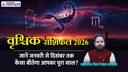 Scorpio Yearly Horoscope 2026: गणेशजी कहते हैं साल 2026 वृश्चिक राशि वालों के लिए बहुत ही शानदार रहने वाला है। इस राशि के लोगो को इस साल कईं उपलब्धियां मिलेंगी। अगर बीमारी से परेशान हैं तो उसमें राहत मिलेगी। अटके हुए काम पूरे होंगे। प्रॉपर्टी के मामलों में थोड़ा सावधान रहने की जरूरत है। अगर पिछले साल कोई नुकसान हुआ है तो वह इस साल पूरा हो सकता है। बिजनेस को आगे बढ़ाने के लिए मेहनत ज्यादा करनी पड़ेगी। नया वाहन भी साल खरीद सकते हैं। ज्योतिषाचार्य चिराग बेजान दारुवाला से जानें वृश्चिक राशि वालों के लिए कैसा रहेगा साल 2026…