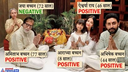 रविवार को आई टेस्ट रिपोर्ट में 46 साल की ऐश्वर्या राय और उनकी 8 साल की बेटी आराध्या भी कोरोना पॉजिटिव पाए गए । 72 साल की जया बच्चन की टेस्ट रिपोर्ट निगेटिव आई। महाराष्ट्र के स्वास्थ्य मंत्री डॉ राजेश टोपे ने ट्वीट करके इसकी पुष्टि की। दोनों के हल्के एसिम्प्टोमैटिक लक्षणों को देखते हुए उन्हें जलसा वाले बंगले में ही होम आइसोलेशन में रहने की सलाह दी गई है। वहीं, अमिताभ की बेटी श्वेता नंदा, उनके बेटे अगस्त्य नंदा और बेटी नव्या नवेली नंदा की रिपोर्ट भी जया की तरह निगेटिव आई हैं और उन्हें भी होम क्वारंटाइन में रहने को कहा है।