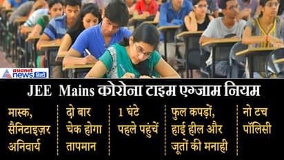 घर से मास्क पहनकर ही जाना है और सेंटर पर भी थ्री लेयर मास्क दिए जाएंगे। वही पहनकर अंदर जाने दिया जाएगा। ट्रांसपेरेंट बॉटल में 50 एमएल सैनिटाइज़र स्टूडेंट्स साथ ले जा सकेंगे। हालांकि एंट्री पर हैंड वॉश से हाथ धोने और फिर सैनिटाइज़ करके ही प्रवेश दिया जाएगा। सेंटर पर जगह जगह सैनिटाइज़र रखा रहेगा। उनका तापमान भी चेक किया जाएगा। 99.4 से ज्यादा टेम्प्रेचर हुआ तो आइसोलेशन रूम में एक बार फिर तापमान देखा जाएगा। ताप ज्यादा होगा तो ऐसे परीक्षार्थी को आइसोलेशन रूम से ही एग्ज़ाम देना होगी।