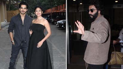 ईशान खट्टर और मृणाल ठाकुर इन दिनों अपनी फिल्म पिप्पा का प्रमोशन कर रहे हैं। इस मौके पर ईशान ने मृणाल की कमर पर हाथ रखकर पोज दिए। वहीं, अर्जुन कपूर अजीबोगरीब हालत में एयरपोर्ट पर नजर आए।