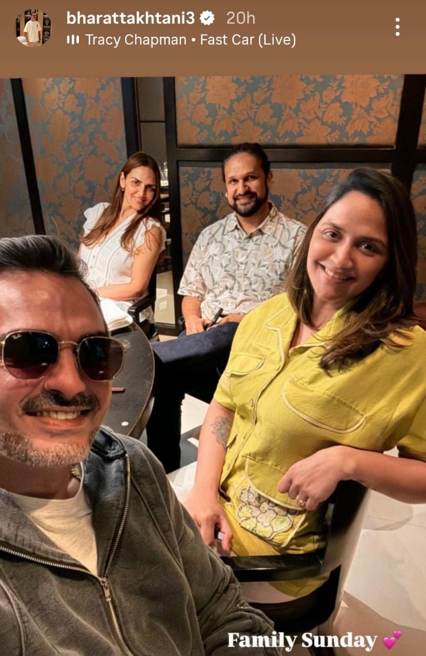 दरअसल भरत तख्तानी ने इंस्टाग्राम स्टोरी पर एक फोटो शेयर की है, जिसमें वो मुंबई के एक रेस्टोरेंट में ईशा देओल, अहना देओल और उनके एक दोस्त के साथ नजर आ रहे हैं। इस फोटो को शेयर करते हुए उन्होंने हार्ट इमोजी शेयर किया और फैमिली संडे लिखा। वहीं अब यह फोटो सोशल मीडिया पर तेजी से वायरल हो रही है। इस फोटो को देखने के बाद यह साफ हो गया कि तलाक के बाद भी भरत और ईशा के रिश्ते काफी अच्छे हैं। आपको बता दें तलाक के बाद दोनों की दो बेटियां, राध्या और मिराया हैं, और दोनों मिलकर अपनी बेटियों की को पेरेंटिंग कर रहे हैं।