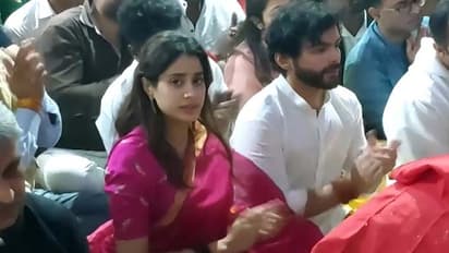 एंटरटेनमेंट डेस्क. जाह्नवी कपूर (Janhvi Kapoor) ने सोमवार को उज्जैन के महाकालेश्वर मंदिर (Mahakaleshwar Temple) में पूजा-अर्चना की। उन्होंने मंदिर में भस्म आरती में हिस्सा लिया और विशेष पूजा-अर्चना की। इस दौरान उनके साथ कथित ब्वॉयफ्रेंड शिखर पहाड़िया (Shikhar Pahariya) भी थे। इस मौके पर जाह्ववी गुलाबी गोल्डन बॉर्डर वाली साड़ी और खुले बालों में नजर आई। वहीं, शिखर ने सफेद कुर्ता पहन रखा था। कपल की फोटोज भी वायरल हो रही है, जिसमें जाह्ववी थोड़ी परेशान भी नजर आईं। बता दें कि मंदिर के पुजारी राघव शर्मा ने उन्हें बाबा महाकाल की फोटो देकर आशीर्वाद भी दिया।