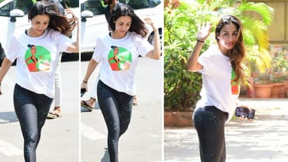 मलाइका अरोड़ा दिव्या योगा क्लास के बाहर भागती-दौड़ती नजर आईं। जैसे ही फोटोग्राफर्स ने उन्हें आवाज दी तो वो अचानक मुड़ी और हाथ हिलाने लगी।