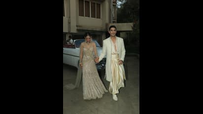 मीडिया के सामने पोज देते वक्त प्रतीक और प्रिया रोमांटिक अंदाज़ में नज़र आए।