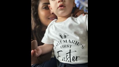 प्रियंका ने कुल 5 फोटोज शेयर की हैं। इस तस्वीर में प्रियंका अपनी बेटी मालती के साथ दिखाई दे रही हैं। इस फोटो में मालती की टी-शर्ट पर लिखा है, 'मालती मैरी का पहला ईस्टर'।
