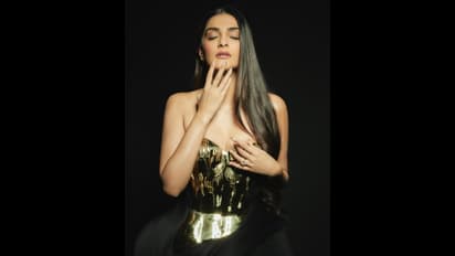 सोनम कपूर इन तस्वीरों में ब्लैक और गोल्डन कलर के आउटफिट में नज़र आ रही हैं।