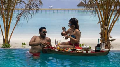 रुबीना दिलैक और अभिनव शुक्ला पूल में ब्रेकफास्ट करते नजर आए। आपको बता दें कि इस टीवी कपल को घूमने में काफी शौक हैं।