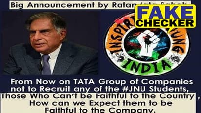 नई दिल्ली। रतन टाटा की एक फोटो सोशल मीडिया पर वायरल है। खासकर कुछ WhatsApp ग्रुप में। जो फोटो वायरल हो रही है उस पर लिखा है, "रतन टाटा साहब की ओर से बड़ी घोषणा: अब से टाटा ग्रुप ऑफ कंपनीज JNU के किसी स्टूडेंट को नौकरी नहीं देगा।"