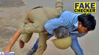 एक तस्वीर फेसबुक पर वायरल हो रही हैं, जिसमें एक शख्स एक पुलिसकर्मी को सड़क पर पटकते हुए दिखाई दे रहा है।