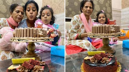 सोशल मीडिया पर शेयर की गई फोटोज में देखने के लिए मिल रहा है कि अंजना सिंह ने बेटी के लिए चॉकलेट केक मंगवाया और घर में ही पति और सास के साथ बेटी का बर्थडे सेलिब्रेट किया।