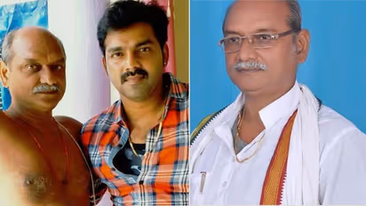 पवन सिंह के अजीत चाचा एक्टर के पिता के श्राद्ध में फोटो में पर फूल चढ़ाते हुए। इन्हीं चाचा की वजह से आज पवन स्टार हैं।