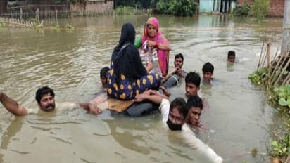 कमर भर से ज्यादा पानी होने के कारण घर से निकलना मुश्किल था। इस मुश्किल परिस्थिति के बीच मजबूर घरवालों ने जुगाड़ टेक्नोलॉजी से ट्यूब का नाव बनाया उसके ऊपर लकड़ी डालकर गर्भवती महिला और उसकी मां को बिठाया।