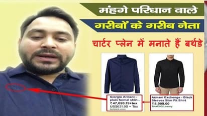 जेडीयू के प्रववक्ता निखिल मंडल ने इस शर्ट के ब्रांड के साथ तेजस्वी की फोटो लगाकर ट्वीट किया है। इस तस्वीर में तेजस्वी की शर्ट की तुलना करते हुए उस ब्रांड की शर्ट दिखाई गई है, जिसकी कीमत 47 हजार रुपए है।