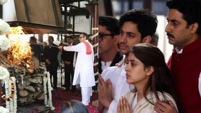 दादी ऋतु नंदा के अंतिम संस्कार के दौरान पोते-पोती यानी अगस्त्य और नव्या नवेली नंदा अपने आंसू नहीं रोक पा रहे थे। दोनों को ही मामा अभिषेक बच्चन ने संभाला। अभिषेक इस दौरान भांजे-भांजी के साथ खड़े नजर आए।