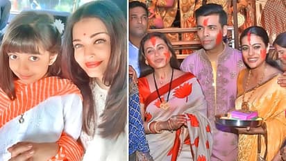 मुंबई। नवरात्रि खत्म होने के बाद 8 अक्टूबर को देशभर में दशहरे का त्योहार बड़ी ही धूमधाम के साथ मनाया गया। आम लोगों से लेकर बॉलीवुड सेलेब्रिटी ने भी दशहरे पर जमकर एन्जॉय किया। इस दौरान ऐश्वर्या जहां बेटी आराध्या के साथ नजर आईं तो वहीं, काजोल और रानी मुखर्जी ने करन जौहर के साथ सिंदूर खेला। इस दौरान काजोल की बहन तनीषा मुखर्जी और चचेरी बहन शरबानी भी शामिल थीं।