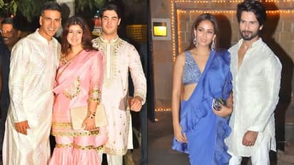 मुंबई। अमिताभ बच्चन के घर रविवार को दिवाली पार्टी हुई। इसमें बॉलीवुड के कई बड़े स्टार्स पहुंचे। पार्टी में अक्षय कुमार जहां पत्नी ट्विंकल और बेटे आरव के साथ नजर आए तो वहीं शाहिद कपूर भी वाइफ मीरा के साथ पहुंचे। पार्टी में ट्विंकल खन्ना जहां पिंक कलर के गरारा में नजर आईं तो वहीं शाहिद की पत्नी मीरा ब्लू कलर की साड़ी में बेहद खूबसूरत लग रही थीं। इनके अलावा अक्षय कुमार और बेटा आरव ट्रेडिशनल लुक में दिखे। वहीं शाहिद कपूर क्रीम कलर के कुर्ते-पजामे में नजर आए। इनके अलावा जैकी श्रॉफ और उनकी पत्नी आयशा, टाइगर श्रॉफ, तब्बू, मसाबा गुप्ता, पूनम ढिल्लों और उनकी बेटी, कृति खरबंदा, फोटोग्राफर डब्बू रत्नानी, सुनील शेट्टी और पत्नी माना, वरुण धवन, नताशा दलाल, आफताब शिवदासानी और उनकी पत्नी निन व अदिति राव हैदरी समेत कई सितारे नजर आए।