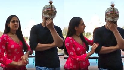 वीडियो में सारा अली खान दर्शकों का परिचय अक्षय कुमार से करवाती हैं और उसके बाद ताजमहल की तरफ इशारा करते हुए कहती हैं कि आप लोगों को देखना है वहां, जबकि अक्षय कुमार हैं यहां।