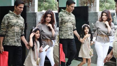मुंबई. रविवार को बॉलीवुड सेलेब्स अलग-अलग जगहों पर स्पॉट हुए। कोई एयरपोर्ट पर नजर आया तो कोई शॉपिंग करता दिखा। कुछ अपनी फिल्म के प्रमोशन में बिजी दिखे। इसी बीच अक्षय कुमार पत्नी ट्विकंल खन्ना और बेटी नितारा के साथ शॉपिंग करते दिखे। मम्मी-पापा के साथ शॉपिंग करते समय अक्षय की 7 साल की बेटी नितारा बेहद खुश नजर आ रही थी। लेकिन जैसे ही नितारा ने देखा मीडिया फोटोग्राफर्स फोटोज क्लिक कर रहे हैं तो वो घबरा गई और उसके चेहरे का रंग उड़ गया।