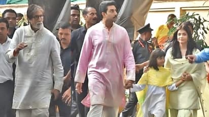 मुंबई। शुक्रवार यानी 11 अक्टूबर को अमिताभ बच्चन 77 साल के हो गए। इस मौके पर बिग बी अपने जुहू स्थित बंगले 'जलसा' के बार स्पॉट हुए। इस दौरान बिग बी के साथ उनकी बहू ऐश्वर्या राय, पोती आराध्या, पत्नी जया बच्चन और बेटी श्वेता नंदा भी दिखीं। बता दें कि इससे पहले बिग बी को जन्मदिन की बधाई देने बड़ी संख्या में लोग उनके घर 'प्रतीक्षा' के बाहर बीती रात से ही खड़े थे। इस दौरान फैन्स ने अपने ही तरीके से बिग बी का बर्थडे सेलिब्रेट किया। किसी ने उनके बर्थडे पर बर्फ की सिल्ली काटकर '77' बनाया तो कोई बंगले के बाहर केक लेकर खड़ा था। अमिताभ ने भी लोगों का हाथ जोड़कर अभिवादन किया। इतना ही नहीं कुछ फैन्स से बच्चन ने हाथ भी मिलाया।