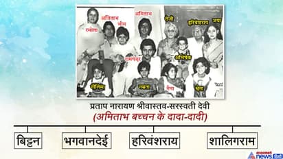 अमिताभ बच्चन के दादा-दादी : अमिताभ बच्चन के दादा-दादी का नाम लाला प्रताप नारायण श्रीवास्तव और सरस्वती देवी है। इनके चार बच्चे थे। जिनमें बिट्टन, भगवानदेई, हरिवंश राय और शालिगराम हैं।
