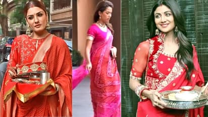 मुंबई। पति की लंबी उम्र के लिए रखा जाने वाला करवा चौथ का व्रत हर आम और खास महिला रखती है। इस बार 17 अक्टूबर को करवा चौथ मनाया जा रहा है। अनिल कपूर की पत्नी सुनीता कपूर ने अपने घर में करवा चौथ की पूजा रखी, जिसमें शिल्पा शेट्टी, रवीना टंडन, नीलम, चंकी पांडे की पत्नी भावना, संजय कपूर की पत्नी महीप के अलावा श्रद्धा कपूर की मौसी पद्मिनी कोल्हापुरे भी पहुंचीं। सभी ने यहां सामूहिक रूप से करवा चौथ की पूजा की। इनके अलावा शाहिद कपूर की पत्नी मीरा ने भी करवा चौथ का व्रत रखा है। मीरा पिंक कलर की साड़ी में बेहद खूबसूरत लग रही थीं।
