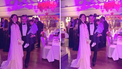 इन फोटोज में बॉलीवुड की 'बेबो' गाउन में बेहद ही प्यारी दिखाई दे रही हैं। इसके साथ ही सैफ ने ब्लैक सूट पहना हुआ है। वहीं, छोटे नवाब तैमूर ब्लू जीन्स और स्काई ब्लू शर्ट में काफी प्यारे दिखाई दे रहे हैं।