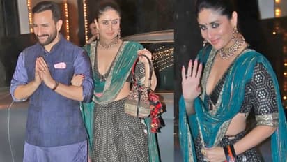 मुंबई। दिवाली के मौके पर रविवार को अनिल कपूर ने एक ग्रैंड पार्टी होस्ट की। इस पार्टी में कपूर सिस्टर्स भी नजर आईं। करीना कपूर पति सैफ के हाथों में हाथ डाले पोज देतीं नजर आईं। वहीं करीना की बहन करिश्मा कपूर भी रेड कलर की साड़ी में बेहद खूबसूरत लग रही थीं। करीना जहां डार्क ग्रीन लहंगे में दिखीं तो वहीं सैफ ने कुर्ता-पजामा और ब्लू जैकेट पहन रखा था। पार्टी में जाने से पहले सैफ-करीना ने बेटे तैमूर के साथ भी फोटो क्लिक करवाई। इस दौरान तैमूर कुर्ते-पजामे और गोल्डन जैकेट में मुस्कुराते हुए नजर आए।