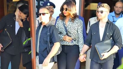 मुंबई। पिछले कुछ दिनों से प्रियंका चोपड़ा और उनके पति मुंबई में ही रुके थे। दरअसल, कपल ईशा अंबानी की होली पार्टी में शामिल होने के लिए इंडिया पहुंचा था। इस दौरान प्रियंका और निक ने ईशा अंबानी के ससुराल में जमकर होली भी खेली थी। होली के बाद अब प्रियंका और निक वापस अमेरिका के लिए रवाना हुए। इस दौरान प्रियंका की मां ने अपने दामाद निक जोनास को गले लगाकर विदा किया। प्रियंका और निक एक-दूजे का हाथ थामे नजर आए। बता दें कि प्रियंका चोपड़ा शादी के बाद ज्यादातर वक्त अमेरिका में ही बिताती हैं। हालांकि वो बीच-बीच में अपने मायके आती रहती हैं।
