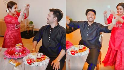 भाई टोनी कक्कड़ को राखी बांधने से पहले नेहा डांस करने लगीं। नेहा को डांस करते देख टोनी भी कुर्सी पर बैठे-बैठे ही झूमने लगे। इस दौरान नेहा जहां पिंक कलर की ड्रेस में दिखीं तो वहीं टोनी ब्लू कुर्ते-पजामे में नजर आए।