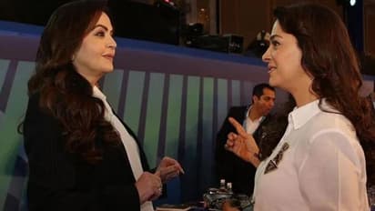 बॉलीवुड एक्ट्रेस और केकेआर की को-ओनर जूही चावला के साथ नीता अंबानी। नीता अंबानी ग्लैमर और ब्यूटी में जूही चावला से जरा भी कम नजर नहीं आतीं।