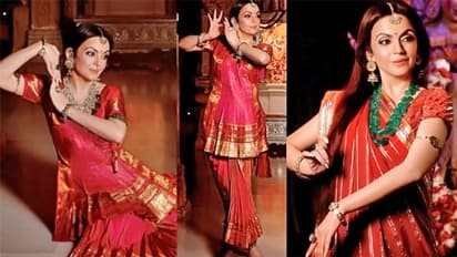 बेटे आकाश अंबानी की शादी के मौके पर नीता अंबानी ने अपने डांस से गेस्ट्स का मन मोह लिया था। नीता अंबानी नृत्य की एक भावपूर्ण मुद्रा में।