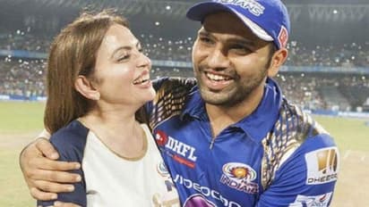 आईपीएल के एक मैच के दौरान स्टेडियम में मुंबई इंडियन्स के कप्तान रोहित शर्मा के साथ नीता अंबानी बेहद खुश दिखाई पड़ रही हैं।