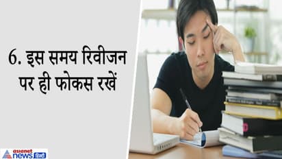 • अध्ययन के लिए समय सारिणी अवश्य बनानी चाहिए। एक प्रॉपर स्ट्रेटजी बनाकर पढ़ाई करें। इसके लिए सुबह से रात तक का टाइम टेबल बनाएं और उसे फॉलो करें। आखिरी महीने में सोशल लाइफ और घरेलू कामों को छोड़ दें।