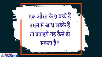 जवाब. 1 औरत और 9 बच्चे कुल 10 लोग हैं। उसमें से आधे 5 लड़के हैं और 5 लड़कियां हैं।