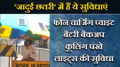 इंजीनियरिंग की पढ़ाई करने वाले 23 वर्षीय अदीब मंसूरी ने इस चिलचिलाती गर्मी में जब अपने क्षेत्र में पुलिसकर्मियों को गश्त लगाते देखा तो महसूस किया कि इसके लिए उन्हें कुछ करना चाहिए। अपने कौशल और ज्ञान का इस्तेमाल करते हुए, अदीब ने दो छतरियां डिजाइन की ये सोलर पैनल वाली हाई-टेक छतरी हैं। इस छाते में पंखा लगाया गया है और साथ ही चार्जिंग सॉकेट और 20 वॉट तक की क्षमता वाला सोलर पैनल भी है। छाते में बैटरी बैकअप भी है जिसका उपयोग रात में किया जा सकता है।