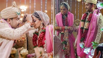 सोशल मीडिया पर वायरल हो रही तस्वीरों में देखने के लिए मिल रहा है कि गर्लफ्रेंड श्वेता अग्रवाल को पत्नी बना आदित्य नारायण की खुशी का ठिकाना नहीं था।
