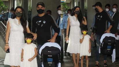 अस्पताल के बाहर निकलकर गीता ने पति और बेटी के साथ कैमरामैन को देर तक पोज दिए। इस दौरान वे बेटी को संभालती भी नजर आई।