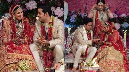 नीता अंबानी ने बेटे-बहू की फेरों के दौरान नजर उतारती दिखी थी। इस मौके पर जहां नीता ने पिंक कलर का हैवी लहंगा कैरी किया था। वहं, उनकी बहू ने सुर्ख लाल रंग का जोड़ा पहना था। श्लोका ने इस मौके हीरों से जड़ा हैवी नेकलेस भी कैरी किया था।