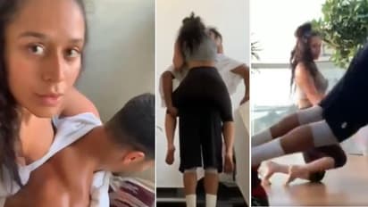 इसमें देखने के लिए मिल रहा है कि बॉयफ्रेंड एबन हेम्स गर्लफ्रेंड कृष्णा को अपनी पीठ पर उठाकर सीढ़ियां चढ़ रहे हैं। टाइगर श्रॉफ की बहन कृष्णा और एबन का यह वीडियो इंस्टाग्राम पर खूब पसंद किया जा रहा हैं। इस वीडियो को अब तक हजारों लोग देख चुके है।