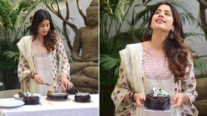 सोशल मीडिया पर शेयर की गई फोटोज में से एक तस्वीर में देखा जा सकता है कि जाह्नवी केक काटने से पहले आसमान की ओर देखकर मम्मी श्रीदेवी को याद कर रही हैं।