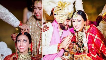 मुंबई. करीना कपूर का छोटा भाई अरमान जैन की शादी हाल ही में हुई है। अरमान ने अपनी लॉन्ग टाइम गर्लफ्रेंड अनीसा मल्होत्रा संग सात फेरे लिए। अरमान-अनीसा की शादी के दौरान की कई फोटो सोशल मीडिया पर वायरल हुई। शादी से जुड़ी कुछ इनसाइड फोटोज सामने आई हैं। एक फोटो में जैसी ही अरमान ने नई नवेली दुल्हन की मांग में सिंदूर भरा तो देखने लायक था अनीसा का रिएक्शन। अनीस ने शादी में सुर्ख लाल का लहंगा और हैवी ज्वैलरी कैरी की थी। शादी में पूरे समय अनीस और अरमान बेहद खुश और एक्साइटेड नजर आए।