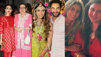 संगीत सेरेमनी में शामिल फैमिली और फ्रेंड्स के साथ करिश्मा कपूर।