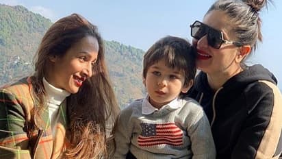 मलाइका ने जो फोटो शेयर की है, उसमें तैमूर अपनी मम्मी करीना की गोद में बैठे नजर आ रहे हैं। हालांकि, उनके चेहरे पर उदासी साफ झलक रही है। फोटो में पीछे पहाड़ भी नजर आ रहे हैं।
