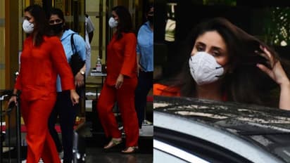 करीना कपूर लंबे समय बाद काम पर लौटी। वे डार्क लाल रंग की ड्रेस पहन घर से बाहर निकली थी। उनके बाल खुले थे और सेफ्टी के लिए उन्होंने मास्क पहन रखा था।