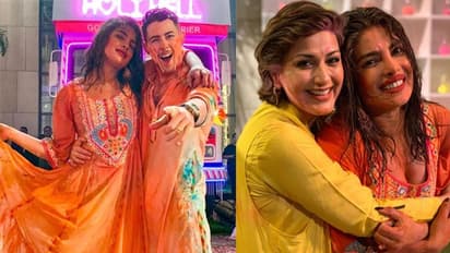 होली सेलिब्रेशन में मस्ती करते नजर आए निक जोनास और प्रियंका चोपड़ा।