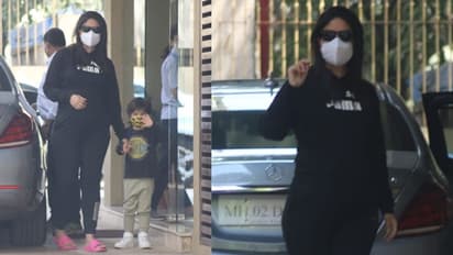 सामने आई फोटोज में करीना ने काले रंग का ट्रैक सूट पहन रखा है। उन्होंने सेफ्टी के लिए चेहरे पर मास्क पहन रखा है। गॉगल लगाने के साथ ही उन्होंने अपने बाल खुल रखे हैं।