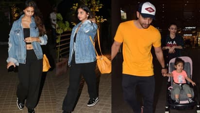 दूसरी ओर स्विट्जरलैंड में हॉलिडे एन्जॉय करने के बाद करीना कपूर की ननद सोहा अली खान मुंबई लौट आई हैं। सोहा पति कुणाल खेमू के साथ एयरपोर्ट पर स्पॉट हुईं। वहीं, उनकी बेटी इनाया पापा का थामे नजर आईं।