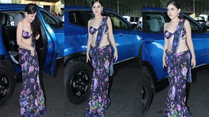 उर्फी जावेद शनिवार को एयरपोर्ट पर जब पहुंची तो पैपराजी के कैमरे उनके उपर चमकने लगे। डार्क साड़ी में वो गजब की हसीन लग रही थीं।